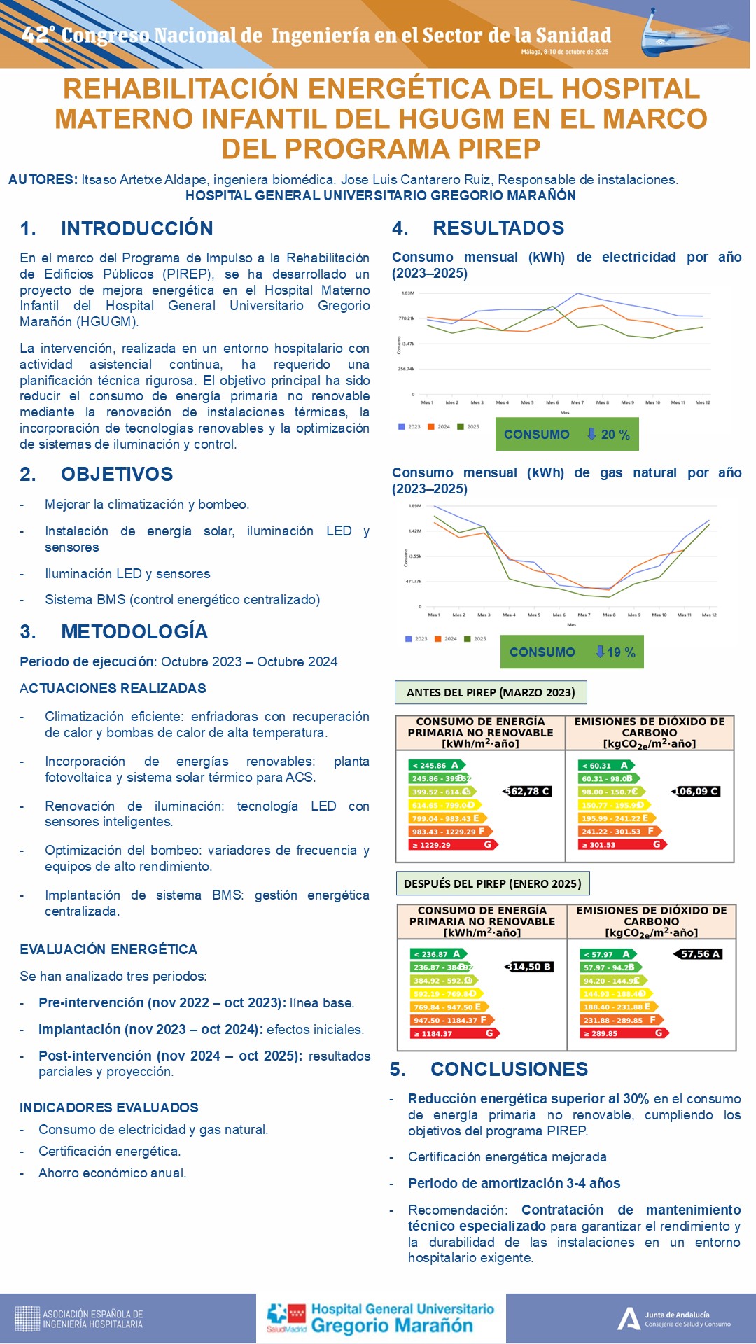 Usted va a votar como Mejor póster informativo: "REHABILITACIÓN ENERGÉTICA DEL HOSPITAL MATERNO INFANTIL DEL HOSPITAL GENERAL UNIVERSITARIO GREGORIO MARAÑÓNEN EL MARCO DEL PROGRAMA PIREP". Recuerde que solamente podrá votar como mejor póster informativo UNO. Se contabilizará una sola votación por asistente.