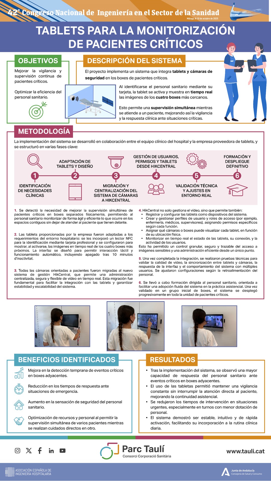 Usted va a votar como Mejor póster informativo: "Tablets para la monitorización de pacientes críticos". Recuerde que solamente podrá votar como mejor póster informativo UNO. Se contabilizará una sola votación por asistente.