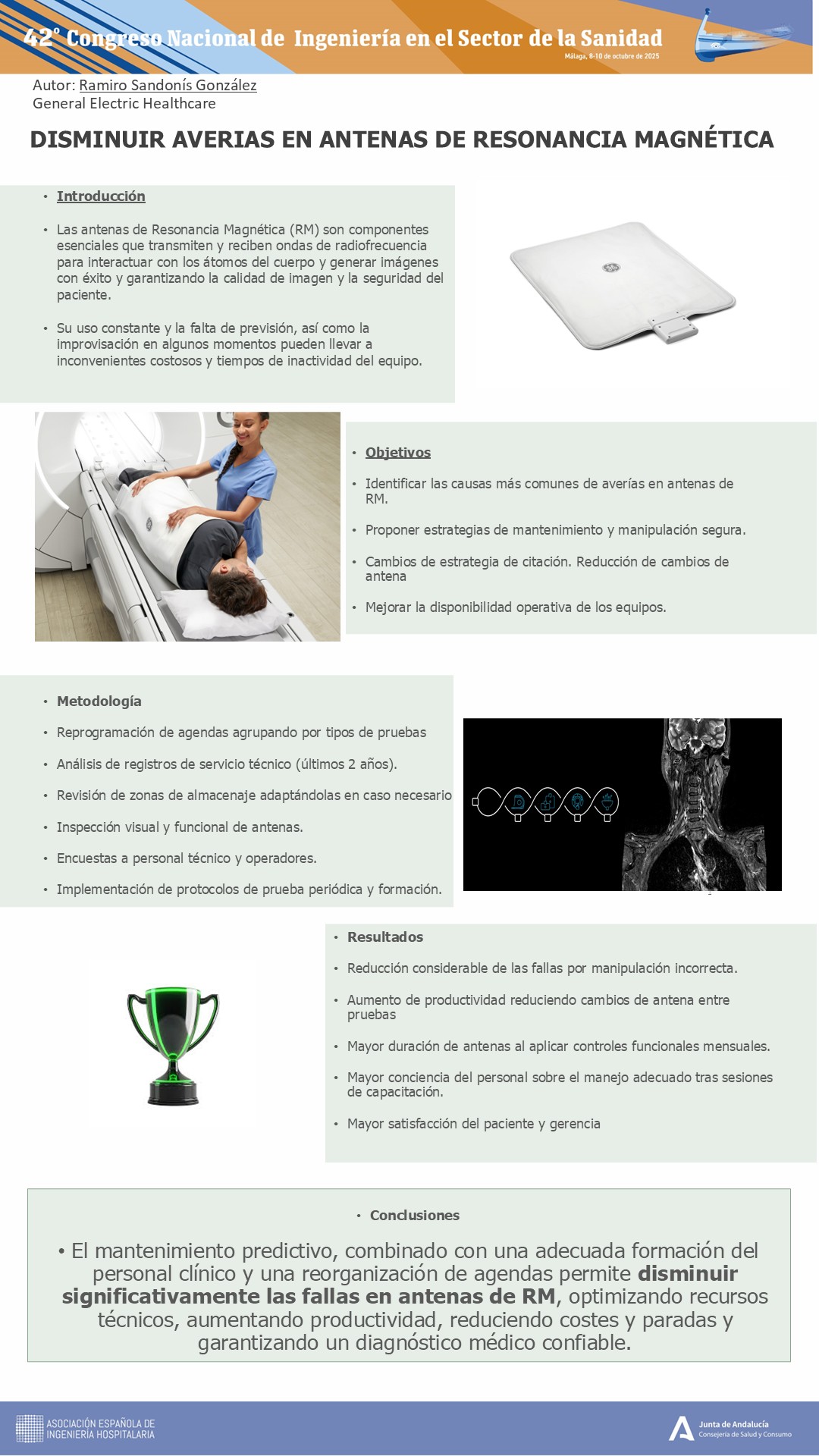Usted va a votar como Mejor póster informativo: "Disminuir averías en antenas de resonancia magnética. ". Recuerde que solamente podrá votar como mejor póster informativo UNO. Se contabilizará una sola votación por asistente.